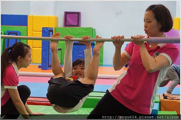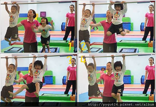 一下就雙手抓牢單槓 跟小猴子一樣的擺盪