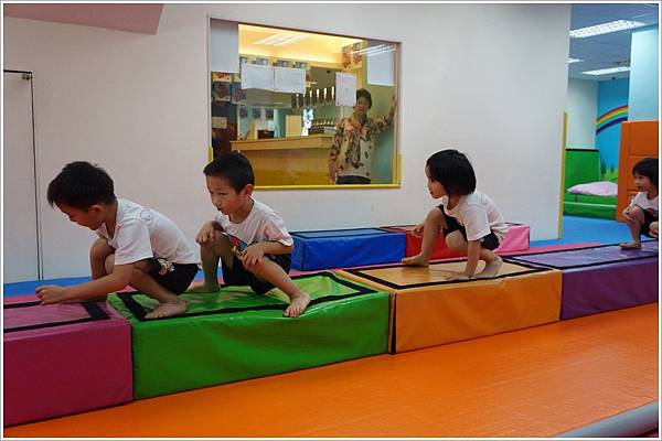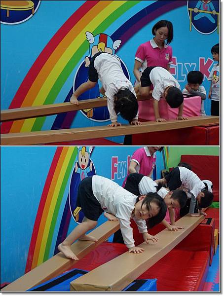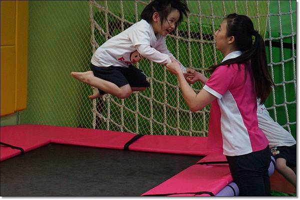 所以王老師在這關就放手讓她自由發揮 但也會在旁適度的注意動坐安全性