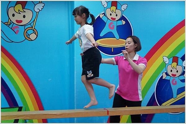 一開始在平衡木上單腳跳走~她的表現還真是不錯~