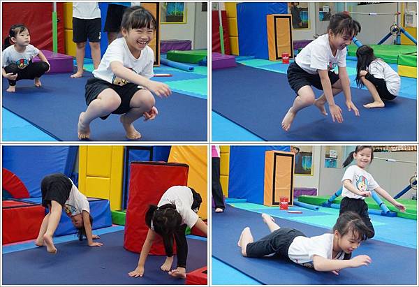 學習"小鴨向前走、青蛙跳、大老虎倒立走和鱷魚爬~"