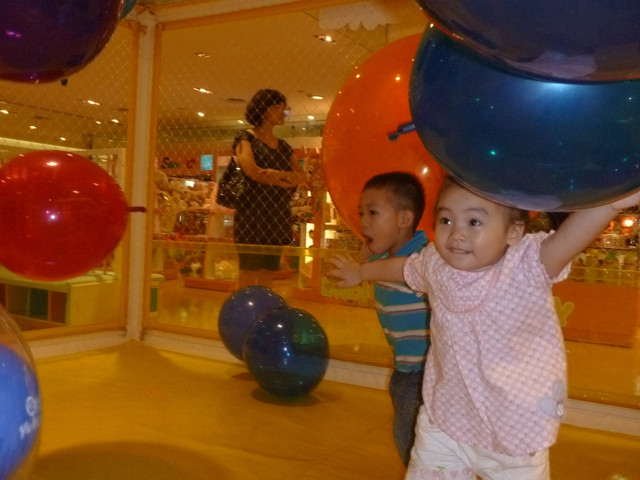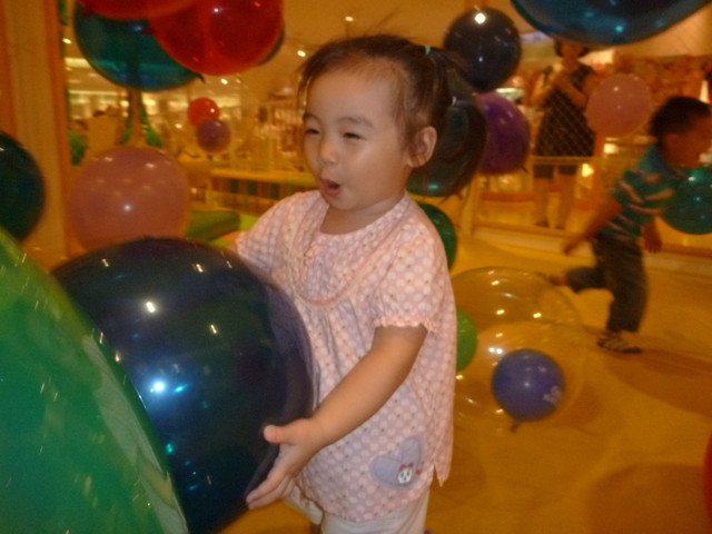 然後就衝向有飛來飛去的大小不一、七彩氣球之"魔法氣球屋"!