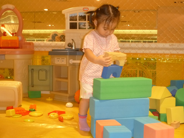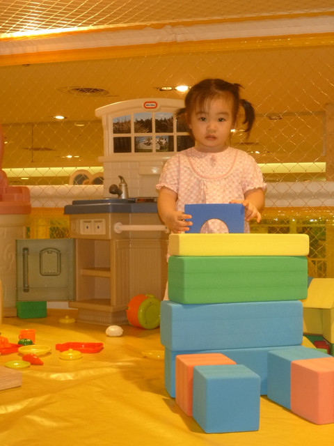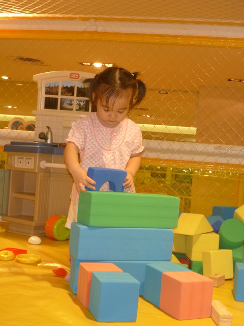 看她堆疊積木堆的很專心