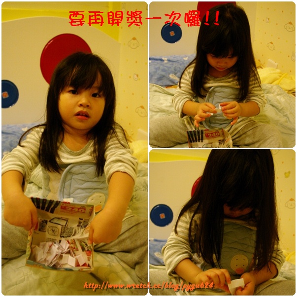 小蘋果雖然想睡了還是很盡忠職守的幫媽咪抽獎!!